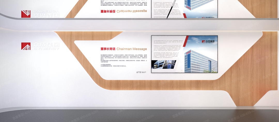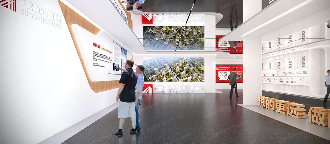 恩嘉设计是专业的企业展厅设计施工一体化服务公司。由恩嘉设计完成展厅施工及多媒体交互设计的众成集团展厅从理念到价值导向,从实力到社会担当,全面阐述众成集团"服务、诚信、社会责任"到集团发展基石。