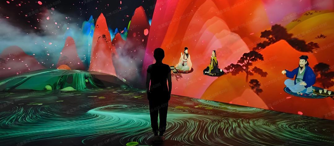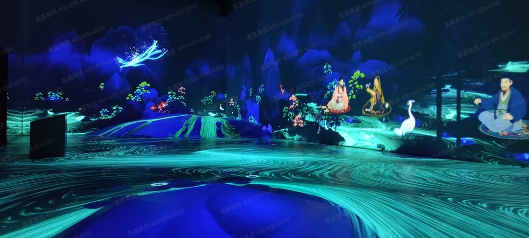 整座展馆分为5大展区,分别是诗字成林、山水幻境、流觞曲水画中游、书画妙境以及梦归琅琊。用当代人可以理解和感知的方式,通过声光电三维视听、五感交互手段,以现代的语言对传统文化进行当代演绎,重现了当时伟大艺术诞生时的情境。